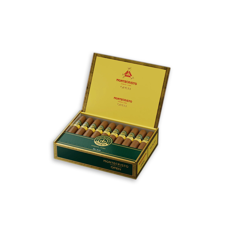 The Montecristo Open Slam is a distinguished new addition to the popular Montecristo Open Series, introducing a bold Idílicos vitola designed for outdoor enjoyment. This medium-bodied Toro-equivalent measures 142 mm (5⅝”) with a 52 ring gauge, offering a cool draw and balanced complexity. Crafted entirely by hand using long filler from Cuba’s renowned Vuelta Abajo region, it delivers a harmonious profile of light wood and creamy notes, evolving into almond, cedar, and gentle spices, with underlying layers of earth and cocoa as it progresses. Presented in a decked box of 20 cigars, the Open Slam marries modern format with classic Montecristo craftsmanship.